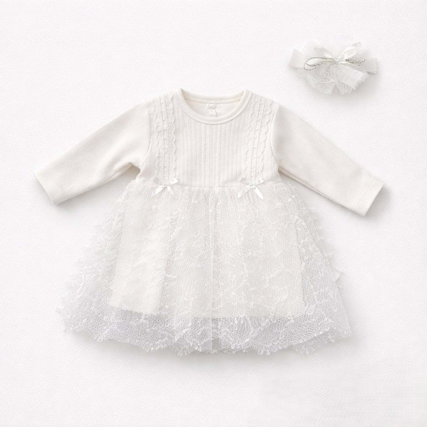Minilay 1181 Şeritli Fiyonklu 2li Kız Elbise