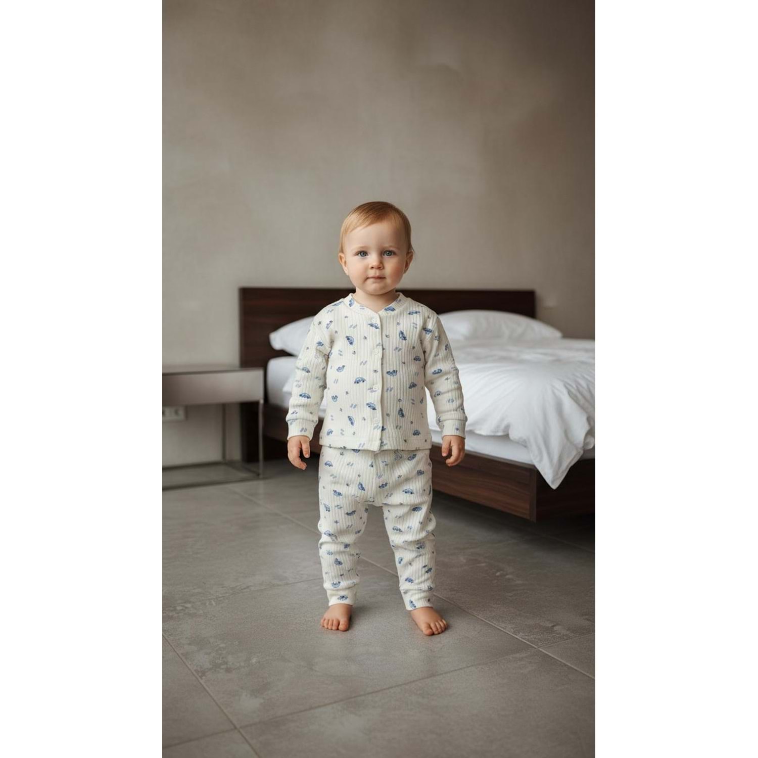 Minipety Önden Çıtçıtlı Pijama Takımı Arabalı