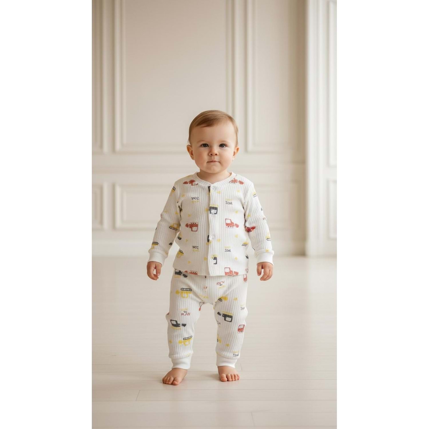 Minipety Önden Çıtçıtlı Pijama Takımı Kamyon