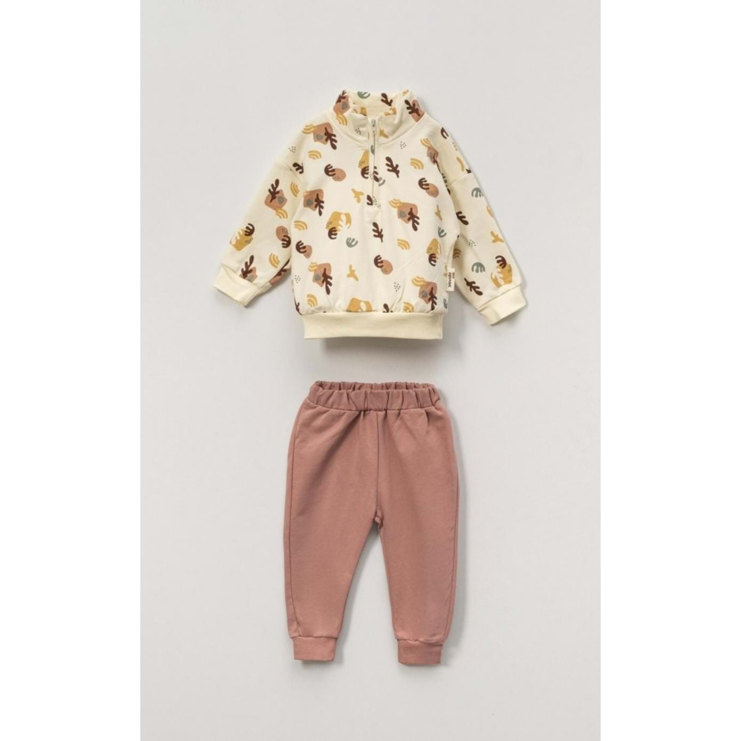 Vovido Soyut Desen Baskılı Fermuarlı 2li Takım
