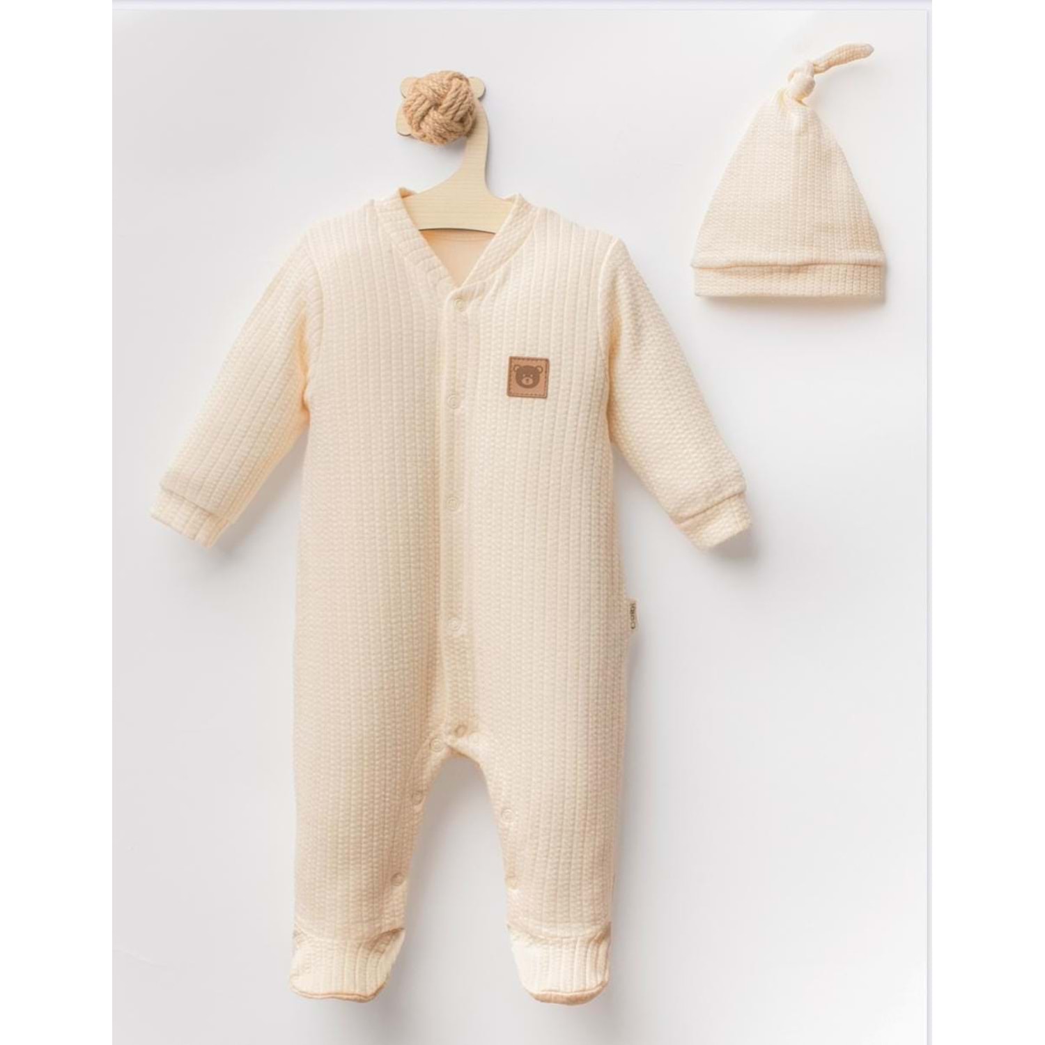 Colbi Baby 3119 Jakarlı Deri Armalı Patikli Şapkalı Tulum
