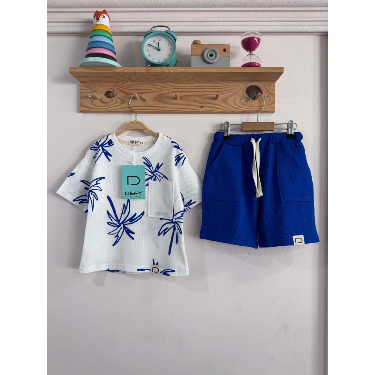 Defy Kids Palmiye Desenli Waffle 2li Erkek Şortlu Takım