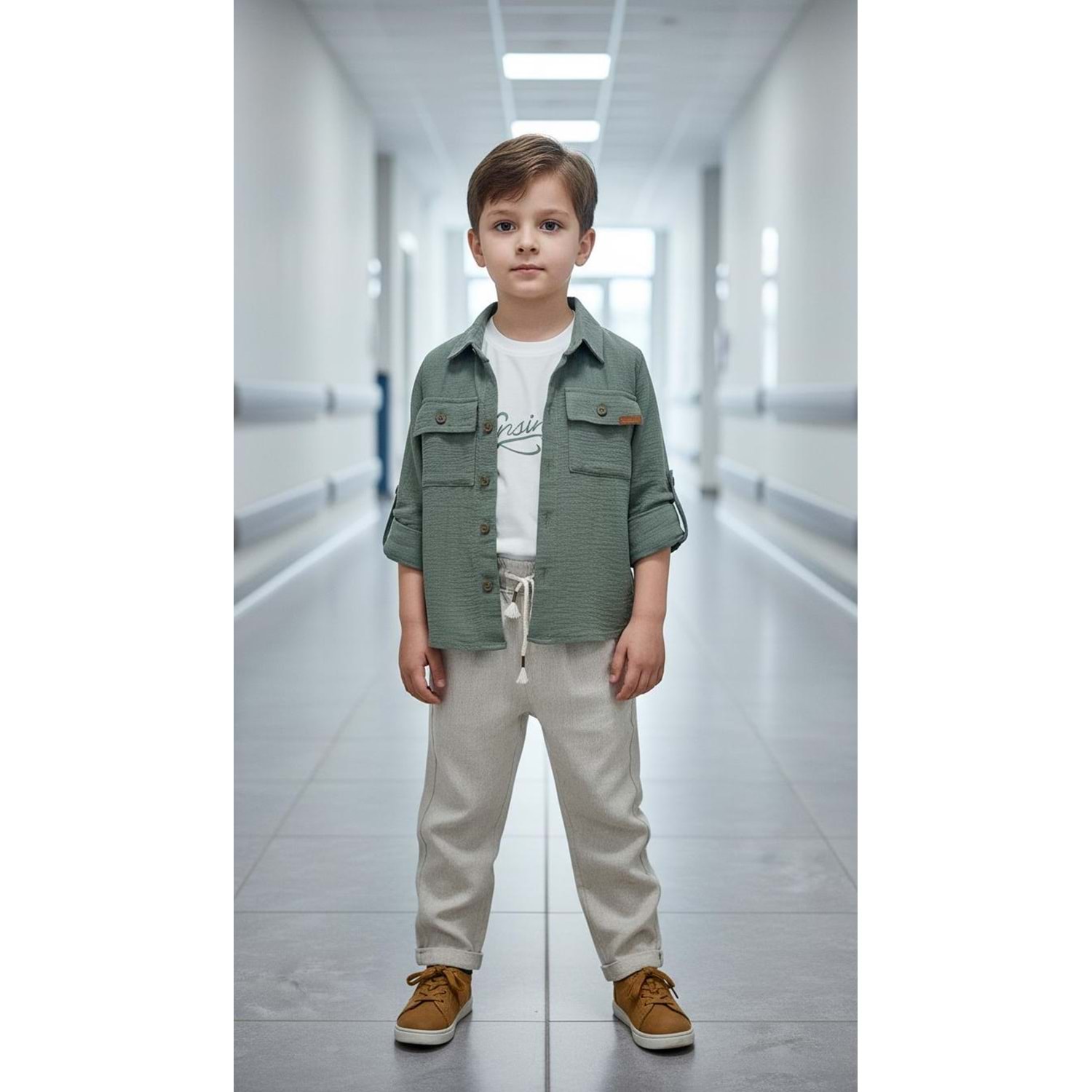 Ecoo Kids 3701 Gabardin Pantolon Müslin Gömlekli 3lü Erkek Takım