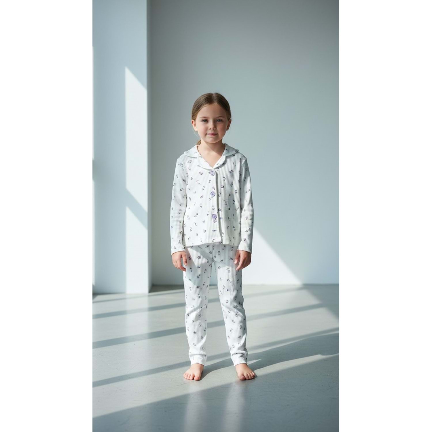 Limmo Kids Düğmeli Pijama Takımı Çiçekli
